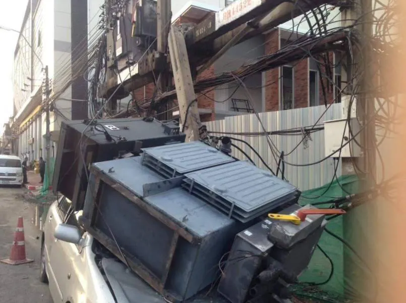 เพจ FM91 Trafficpro รายงานว่า วันที่ 24 ตุลาคม 60 เมื่อ 08.36 น. มีตู้จ่ายไฟขนาดใหญ่ หล่นลงมาทับรถนั่งส่วนบุคคลพังยับเสียหาย ที่ถนนกรุงเกษม ช่วงหน้าสำนักงานคณะกรรมการ