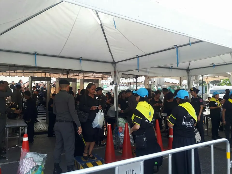 25 ตุลาคม 60 ผู้สื่อข่าว new18 รายงานว่า เวลาประมาณ 8.00 น. ที่ผ่านมา เจ้าหน้าที่ได้ปิดจุดคัดกรอง บริเวณ รร. รัตนโกสินทร์แล้ว ซึ่งถือเต็มอัตราจำนวนคน ในริมฟุตบาทพื้นที่ชั้นใน ฝั่งด้านซ้าย ซึ่งประชาชนที่ผ่านจุดคัดกรองมาแล้ว ต้องแสดงบัตรประชาชน และจะได้รับสติ๊กเกอร์ ยืนยันตัวบุคคลว่า ได้มีการตรวจสอบอย่างถูกต้องตามระเบียบแล้ว