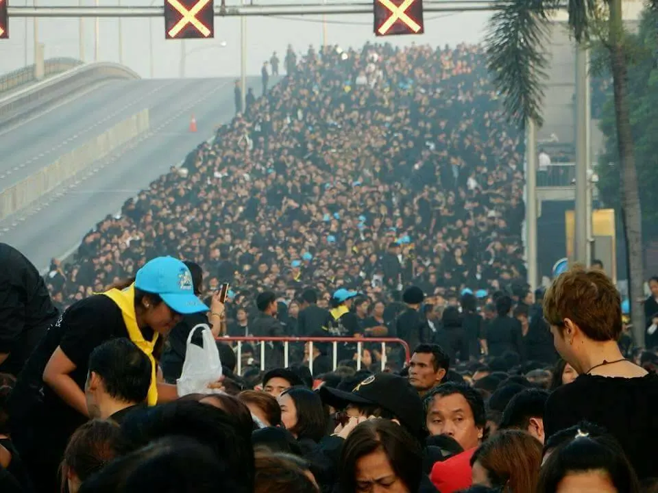 โดยคาดว่า ในสนามหลวงมีประชาชนกว่า 80,000 คน และยังมีรอเข้าจุดคัดกรองโดยรอบประมาณ 60,000 คน สะพานพระปิ่นเกล้าและถนนราชดำเนิน มีปชช.หนาแน่นตลอดทั้งเส้นทาง
