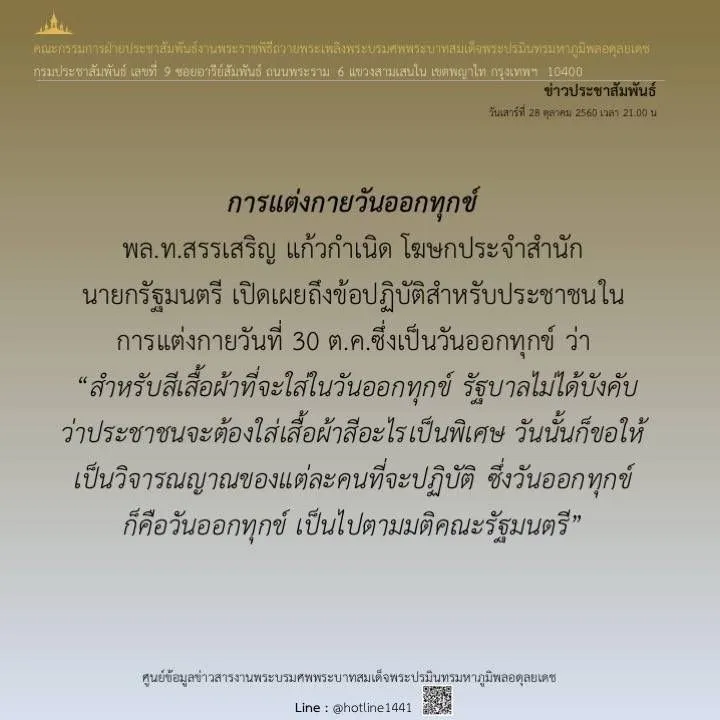 รัฐบาลแจงแนวทางออกทุกข์ ย้ำไม่ได้ห้ามแต่งชุดดำ ขอให้ประชาชนใช้วิจารณญาณของแต่ละคนที่จะปฏิบัติตัว