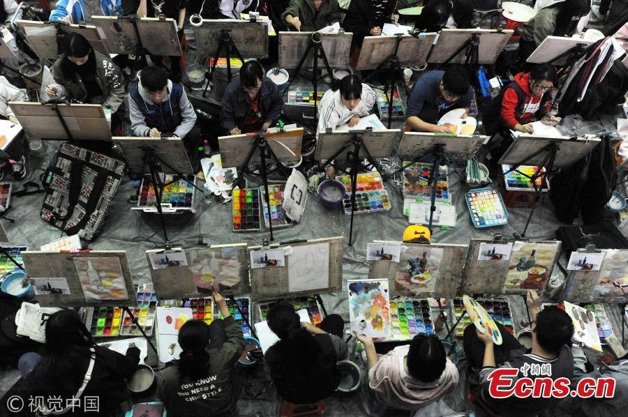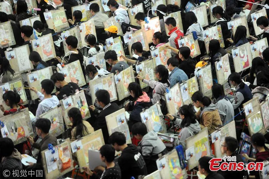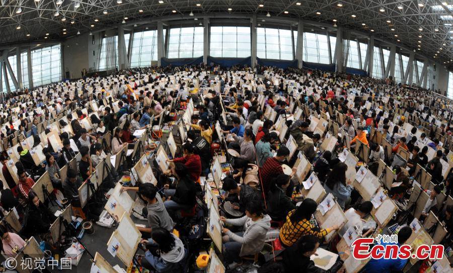 ชมภาพที่ถูกบันทึกไว้ในวันที่ 29 ตุลาคม 2017 ของบรรดานักเรียนกว่า 10,000 คนที่มาสมัครสอบเข้ามหาวิทยาลัย สาขาวิจิตรศิลป์ โดยพวกเขาต้องผ่านการสอบวาดภาพเหมือนครั้งนี้ ที่จัดขึ้นในเมืองอู่ฮั่น เมืองเอกของมณฑลหูเป่ย ทางตอนกลางของประเทศจีนให้ได้เสียก่อน และด้วยจำนวนผู้สมัครที่มีมหาศาล ทำให้ต้องใช้สถานที่สอบเป็นโรงยิมถึง 6 แห่ง แบ่งออกเป็นอย่างน้อยที่ละ 3,000 คน