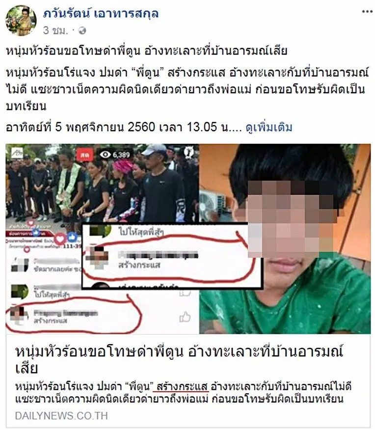 หนุ่มหัวร้อนขอโทษ หลังด่าพี่ตูนสร้างกระแส อ้างทะเลาะที่บ้านอารมณ์เสีย