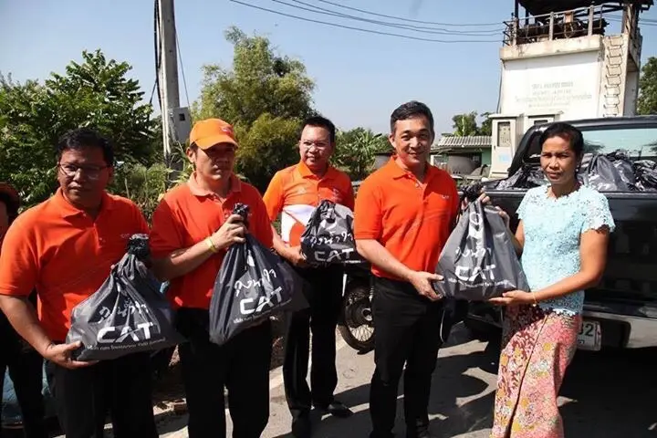 พันเอก สรรพชัย หุวะนันทน์ กรรมการผู้จัดการใหญ่ บริษัท กสท โทรคมนาคม จำกัด (มหาชน) หรือ CAT และ น.อ.สมศักดิ์ ขาวสุวรรณ์ รองปลัดกระทรวงดิจิทัลเพื่อเศรษฐกิจและสังคม นำทีมผู้บริหารและพนักงาน CAT จิตอาสา ลงพื้นที่มอบถุงน้ำใจ CAT จำนวน 1,000 ถุง เพื่อบรรเทาความเดือดร้อนให้กับผู้ประสบอุทกภัยในพื้นที่อำเภอบางไทร จังหวัดพระนครศรีอยุธยา โดยมี นายวิรัตน์ สินสาย นายอำเภอ บางไทร จังหวัดพระนครศรีอยุธยา เป็นผู้รับมอบ ณ อำเภอบางไทร จังหวัดพระนครศรีอยุธยา เมื่อวันที่ 3 พฤศจิกายน 2560