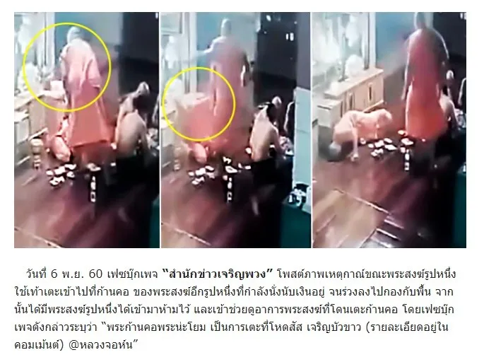 หลวงพี่โหด เตะก้านคอพระลูกวัดคว่ำ (ชมคลิป)