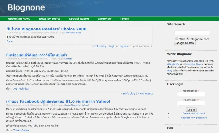 Blognone นั้นถือว่าเป็นผู้ให้บริการด้านบล็อกสาธารณะมาตั้งแต่ 27 สิงหาคม 2004 มีโมเดลแบบ user generated content (UGC) โดย Blognone นั้นเน้นเชิญชวนทุกคนให้มาร่วมกันเขียนข่าว มีการสร้างระบบ Writer, Contributer โดยช่วงเริ่มแรกนั้นคนที่เขียนข่าวเป็นหลัก จากนั้นก็เริ่มมีคนสนใจลองเข้ามาเขียนข่าวเพิ่มเรื่อยๆ จากการจัดกิจกรรมอย่างต่อเนื่อง และเขียนข่าวอย่างสม่ำเสมอ ทำให้ในปัจจุบันนี้มี Writer เพิ่มมากขึ้นเรื่อยๆ ทำให้ตอนนี้น่าจะเรียกได้ว่าเป็นเว็บข่าวไอทีอันดับต้นๆ ของเมืองไทยเลยทีเดียว