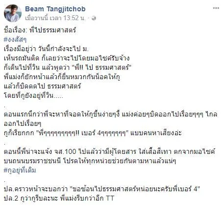 โอ๊ยขำ !!! ใครอ่านไม่ขำให้เตะเลย เรื่องของ นักศึกษาหนุ่ม คนหนึ่งเจ้าของเฟสบุ๊ค Beam Tangjitchob คือหนุ่มคนนี้เดินไปที่วินมอไซค์ แล้วบอกพี่วินให้ไปส่งที่ธรรมศาสตร์ ก็พูดเหมือนจะตกลงเข้าใจกันดีเพราะพี่แกก็ยื่นหมวกกันน็อคให้ แต่เกิดอะไรขึ้นนั้น ไปอ่านกันเลย ภาพจากเฟสบุ๊ค Beam Tangjitchob