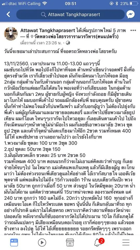 ชาวแปดริ้วเตือนภัย!! นักท่องเที่ยวมาไหว้หลวงพ่อฯ โดนทั้งหว่านล้อมให้ซื้อดอกไม้ธูปเทียนแพงๆ ทั้งโดนกรีดยางรถ ทำวัดเสื่อมเสีย