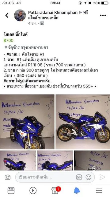 เวลาผ่านไป ไม่ก็ชั่วโมง เจ้าตัวยังได้โพสต์ต่ออีกว่า… #แถลงการฉบับที่1 ตอนนี้มีคน inbox สอบถามเรื่อง โมเดล R1 คันนี้ ที่มีประเด็นอยู่ว่าขายไปหรือยัง โมเดลR1 คันนี้ได้ขายไปแล้ว เมื่อเวลา 9 นาฬิกา ตอนเช้านี้ นี่เอง โอนแล้วเรียบร้อย ปล.โมเดลนินจา300 ก็ติดจองรอโอนอยู่เหมือนกันครับ.