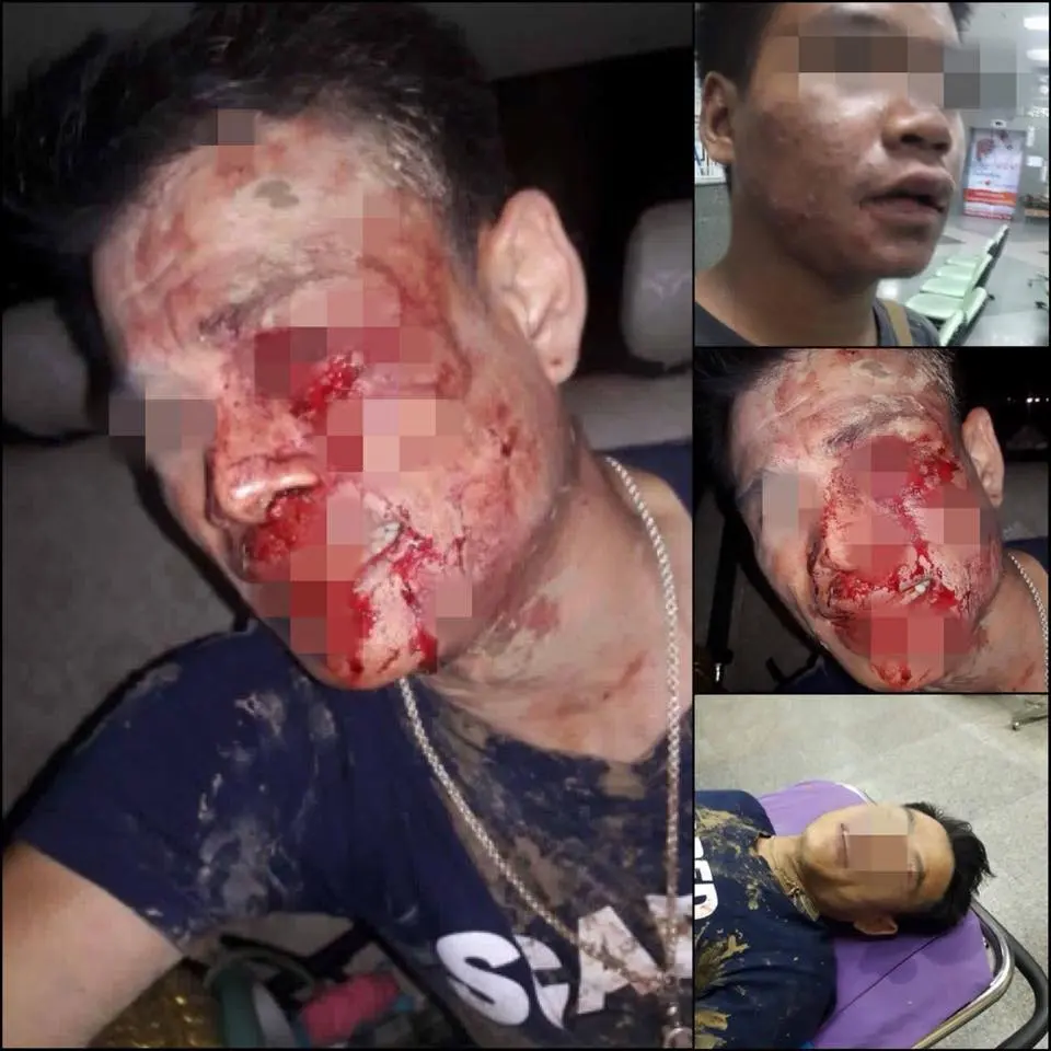 ต่อยผมและพี่ชายและพี่สาวผม และดึงพี่สาวผมลง แล้วมันก็ลงมือต่อยๆๆๆๆๆ และก็กระโดนเตะไปที่ หลังของพี่ชายผม และมันก็มาต่อยหน้าผมต่อยหน้าพี่ชายและพี่สาวผม พวกผมก็ได้แต่ยกมือไหว้ ขอร้องขอชีวิต และขอให้ปล่อยพวกผมไป แต่มันไม่ฟังได้แต่ต่อยๆๆๆ และผมก็ จะบิดรถหนีแต่หนีไม่ได้ครับ เพราะว่ามันขับรถมาชนอีกรอบ จนรถผมล้มลง และมันต่อยๆๆๆจนเลือดอาบหน้า และอีกรถ2คันมันล้อมไม่ให้พวกไป มันมีมากัน3คนครับ พอตีเสร็จมันก็ขับรถหนีไปเลยครับ ทะเบียน 1กฉ 5212