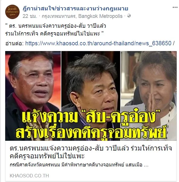 วิบากกรรมครูจอมทรัพย์และพวก!!! "ตร.นครพนมแจ้งความครูอ๋อง-สับ วาปีแล้ว ร่วมให้การเท็จ คดีครูจอมทรัพย์ไม่ใช่แพะ"