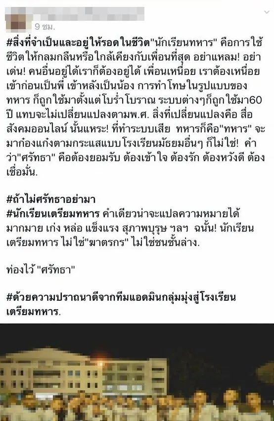 ยาวไปๆ แอดมินเพจดังแนะวิธีอยู่รอดในรั้วโรงเรียนเตรียมทหาร ลั่น ไม่ใช่ฆาตกร และไม่ใช่ชนชั้นล่าง