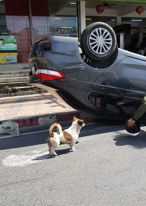 เป็นข่าวอุบัติเหตุที่น่ารักมาก เมื่อชาวเน็ตแห่ชื่นชมน้องหมา ที่เป็นต้นเหตุทำรถคว่ำ แต่ไม่หนีไปไหน มายืนรอดูเจ้าของรถด้วยท่าทางน่ารักน่าเอ็นดู อย่างงี้เป็นใครก็โกรธไม่ลง