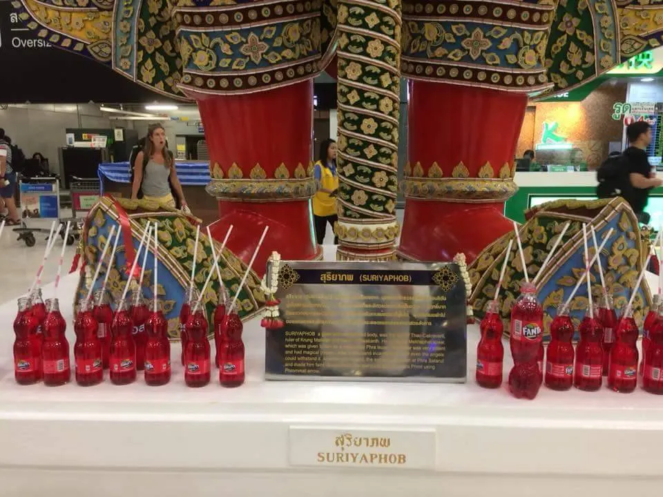 นี่ไงไทยแลนด์4.0 !?! เจ้าหน้าที่รปภ.ท่าอากาศยานสุวรรณภูมิ สุดอึ้ง!!! มีคนนำน้ำแดง พวงมาลัย ถวายประติมากรรมยักษ์สุริยาภพกลางสนามบินเพียบ
