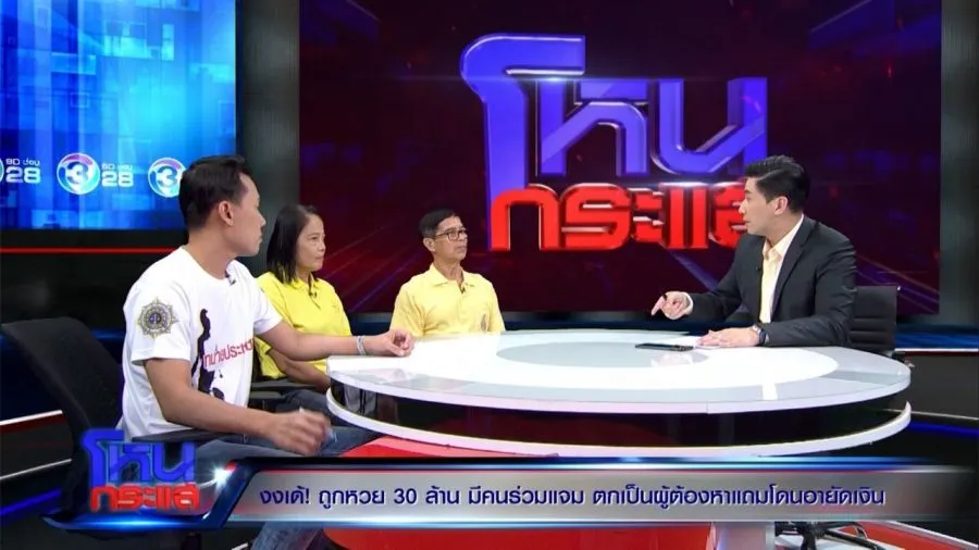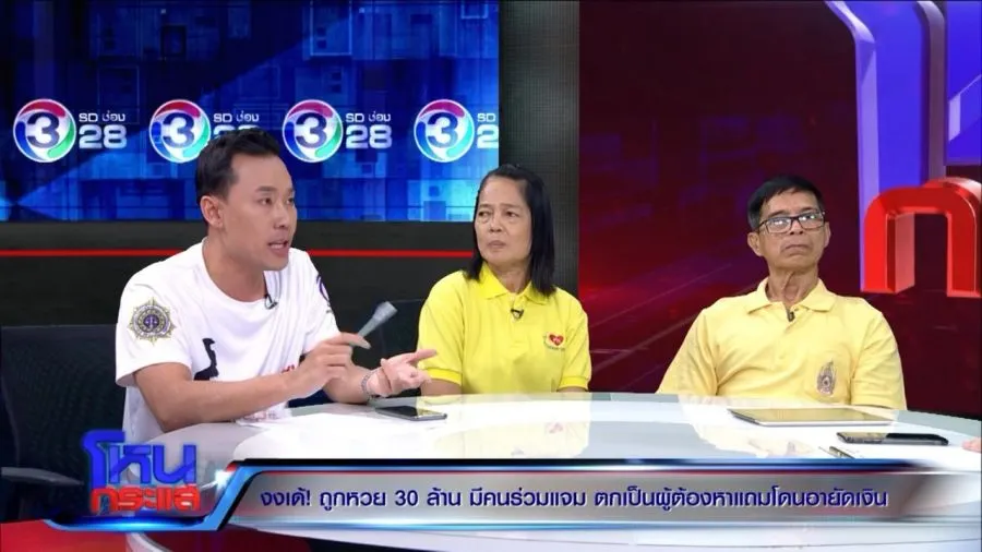 “หนุ่ม กรรชัย กำเนิดพลอย” ได้เชิญแขกรับเชิญ “ร.ต.ท. จรูญ วิมล” ผู้ที่ถูกสลากกินแบ่งรัฐบาล 30 ล้านบาท พร้อม “คุณป้าลาวัลย์” ภรรยาและ“ทนายษิทรา เบี้ยบังเกิด” เลขาธิการมูลนิธิทีมงานทนายประชาชนซึ่งเข้ามาดูแลคดีนี้