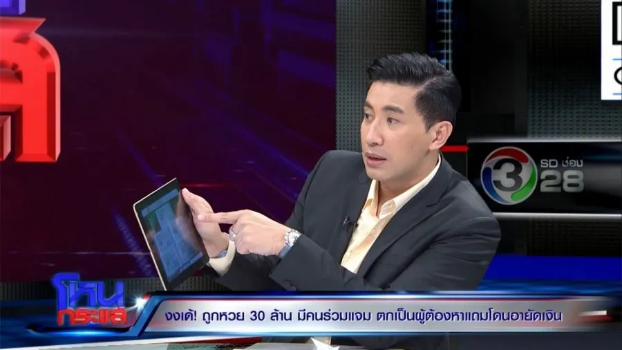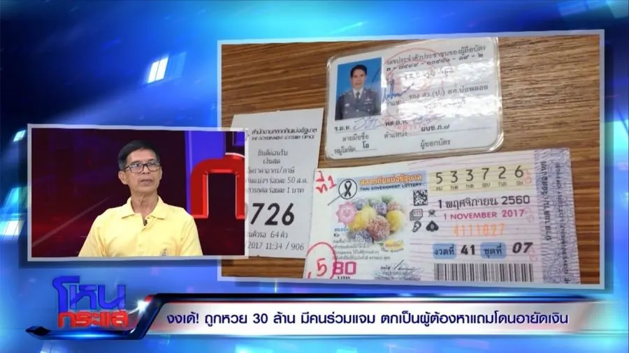 ทนาย : “ใช่ครับ เขาก็ร้องเรียนว่าเขาถูกล็อตเตอรี่รางวัล 30 ล้าน แต่ไม่ได้รับความเป็นธรรม มีคนกล่าวอ้างว่าถูกก่อนหน้านี้ มาแจ้งความและอายัดเงินในบัญชีของเขา”