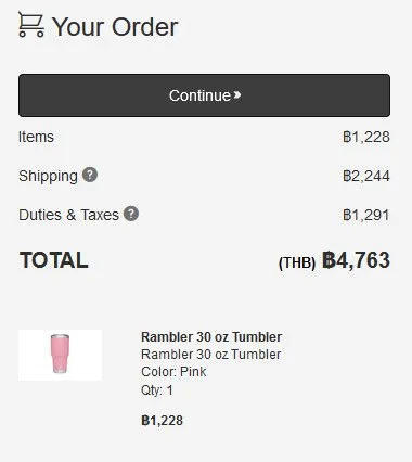 งานนี้จึงยอมไม่ได้เจ้าของแบรนด์ YETI จึงทำหน้าเว็บเป็นภาษาไทย พร้อมประกาศส่งตรงถึงไทย แต่ที่น่าแปลกใจว่าของแท้ๆ ขายกันใบล่ะ 1,200 บาท แล้วที่ขายกันเกลื่อนในไทย 300 กว่าบ้านคืออะไร!
