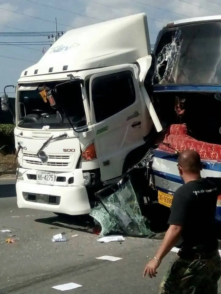 รอดตายมาได้อย่างหวุดหวิดสำหรับทัวร์นักท่องเที่ยวจีนหลายสิบชีวิต ที่โดยสารมากับรถทัวร์แล้วเกิดอุบัติเหตุเฉี่ยวชนกับรถบรรทุกพ่วง18 ล้อ ที่หักหลบรถเก๋งเข้ามาในเลนรถทัวร์ เบรคไม่ทันเลยเฉี่ยวชนกัน แล้วยังมีรถกระบะอีกคันตามมาชนซ้ำอีก เหตุเกิดบริเวณถนนบายพาสขาเข้าพัทยา ตำบลบ้านสวน อำเภอเมือง ชลบุรี ก่อนถึงภัตตาคารศรีนิยม ไม่ตายแต่ได้รับบาดเจ็บถึง31คน เป็นชาย 8 หญิง 23 คน คนที่ยังพอเอาตัวเองออกมาได้ ก็ต้องเอาบันไดพาดปีนป่ายและช่วยเหลือกันออกมา เจ้าหน้าที่เร่งนำคนเจ็บส่งโรงพยาบาล พร้อมกับเคลื่อนย้ายรถเพื่อระบายการจราจร