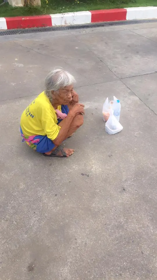 สุดสงสารยาย นั่งยองๆกระเถิบๆมาถึงหน้าเซเว่น เพื่อรอคนใจบุญซื้อข้าวให้กิน โดยคุณ Phannipha Thongpoon ได้เล่าว่า