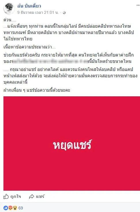 มันมีคลิปที่ทหารอินโดกำลังทารุณนักโทษคดีค้ามนุษย์อยู่ แล้วไม่รู้หลุดมาได้ไงตั้งหลายเดือนละนะ แต่ล่าสุดมีคนเอาคลิปนี้มาลงเฟซ แล้วอ้างว่าเป็นคลิปทหารไทยลงโทษทหารเกณฑ์ มีการพาดพิงไปถึงแม่ทัพภาค 4 แล้วคนก็แชร์กันรัวๆ แถมยังมีพวกเซฟคลิปไปอัพใหม่รัวๆอีก