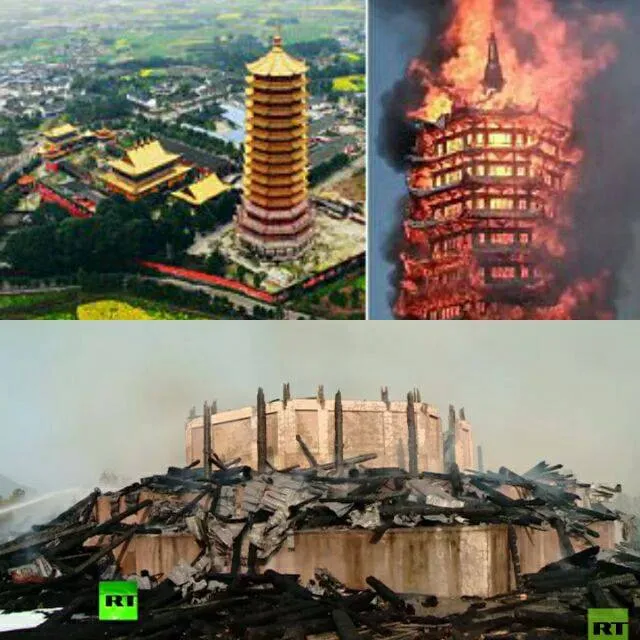 ภาพล่าสุด ไฟไหม้เจดีย์ดังของจีนจนราบ