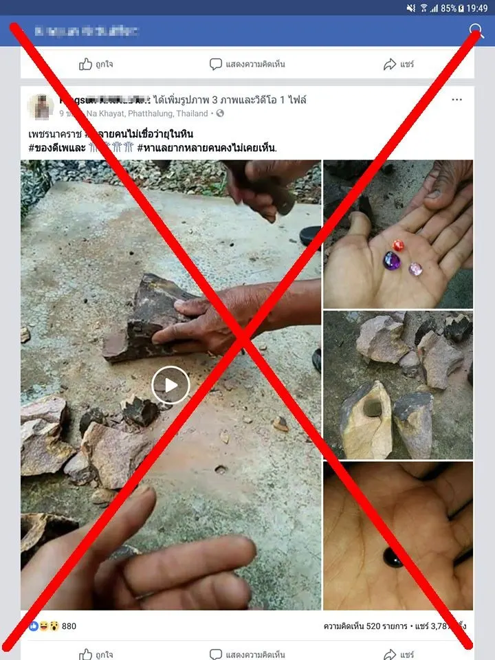 แชร์มาถามกันหนักมาก ว่ามีจริงเหรออาจารย์ "เพชรพญานาค" เสด็จมาอยู่ในหิน ต้องทุบเปิดดูถึงจะเจอ ... โถๆๆ มุกนี้เค้าหลอกหากินกันมานานมากๆๆ แล้ว ยังมีคนเชื่อกันอีกเหรอเนี่ย .. มันเอาเศษแก้วหลอม (ไม่ใช่อัญมณีอะไร) มาทำซ่อนไว้ในหิน โดยจะใช้หินจริงมาเจาะรูใส่เม็ดแก้วแล้วทากาวปิด หรือใช้ปูนปั้นเป็นหินแล้วทาสีทับหลอกๆ ก็ได้ทั้งนั้น ... อย่าหลงเชื่อเชียวครับ ใครขายอยู่ มีความผิดติดคุกนะ !