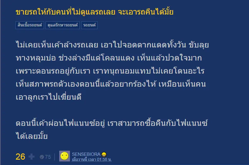 ขายรถให้กับคนที่ไม่ดูแลรถเลย จะเอารถคืนได้มั้ย