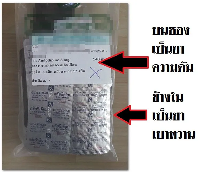 ยาที่ญาติไปรับมาจาก จนท บนซองเขียนว่ายาความดัน แต่ข้างในคือยารักษาเบาหวาน