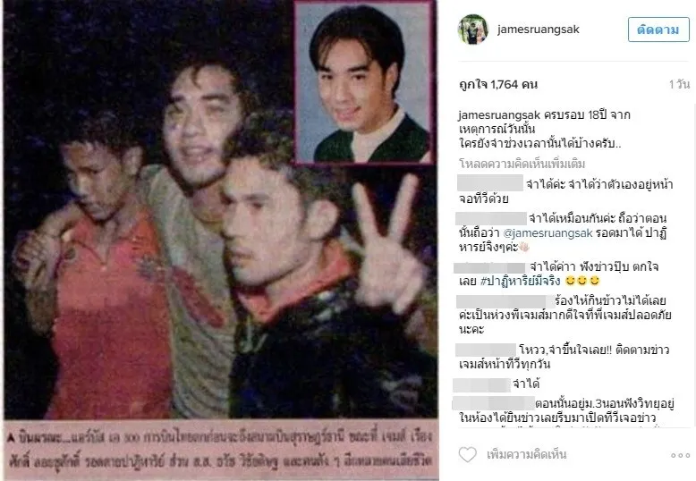 จากกรณีที่ เจมส์ เรืองศักดิ์ ลอยชูศักดิ์ ได้โพสท์รำถึงเหตุการณ์เครื่องบินตก ที่ จ.สุราษฎร์ธานี ระหว่างลงจอดเนื่องจากสภาพอากาศย่ำแย่ ทำให้มีผู้เสียชีวิต 101 คน และ บาดเจ็บ 45 คน เมื่อ 19 ปี ซึ่งหนุ่มเจมส์เป็นหนึ่งในผู้รอดชีวิต