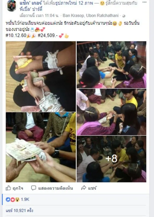 กลายเป็นภาพที่โลกออนไลน์กำลังให้ความสนใจในขณะนี้ สำหรับภาพการผูกข้อมือหมั้น ระหว่าง หนุ่ม-สาว ท่ามกลางญาติผู้ใหญ่ที่ทำพิธี โดยเรื่องราวนี้มีชาวเน็ตแชร์ส่งต่อกว่า 10,000 คน