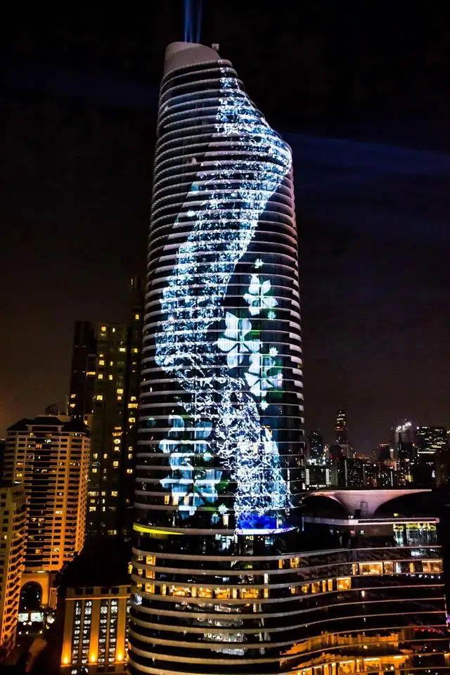 การแสดง แสง สี 3 มิติ (3D projection mapping) บนตึกสูง 60 ชั้น ครั้งแรกในเมืองไทยใจกลางราชประสงค์ ณ โครงการแมกโนเลียส์ ราชดำริ บูเลอวาร์ด (MRB)