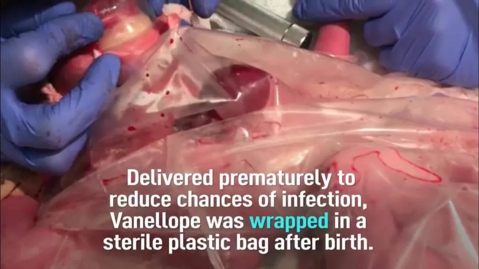 รายงานระบุว่าแพทย์และพยาบาลกว่า 50 คน ได้ดำเนินการผ่าตัดถึงสามครั้งให้เวเนลโลปี ทารกคลอดก่อนกำหนดที่ต้องอยู่ในถุงพลาสติกป้องกันการติดเชื้อตั้งแต่กำเนิด เนื่องจากเผชิญภาวะเอคโทเปีย คอร์ดิส (Ectopia Cordis) ซึ่งส่งผลให้ไม่มีกระดูกหน้าอกและอวัยวะสำคัญอย่างหัวใจออกมาเติบโตอยู่นอกร่างกาย