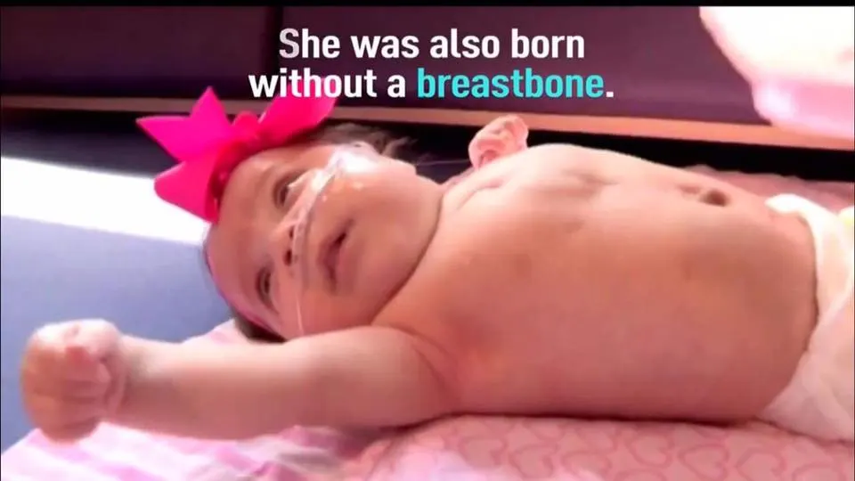 เมื่อไม่นานนี้ คณะแพทย์และพยาบาลประจำโรงพยาบาลเกลนฟิลด์ สหราชอาณาจักร ประสบความสำเร็จในการช่วยชีวิตเด็กหญิงเวเนลโลปี โฮป วิลคินส์ วัย 3 สัปดาห์ที่ลืมตาดูโลกพร้อมกับ “หัวใจ” อยู่นอกทรวงอก โดยหนูน้อยเวเนลโลปีอาจถือเป็นทารกคนแรกของประเทศ ที่รอดชีวิตจากความผิดปกติสุดหายากนี้