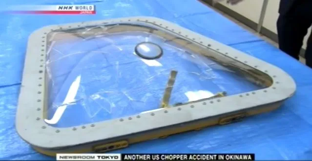 กองทัพสหรัฐขึ้นชื่อว่าใหญ่เป็นอันดับ 1 ของโลกแต่มีเหตุอยู่เรื่อยตั้งแต่เรือรบชนเรือพาณิชย์ถึง 2 ครั้ง ขณะที่กรณีล่าสุดนั้นนับว่าน่าอับอายอย่างยิ่ง เมื่อหน้าต่างของฮ.ทหารสหรัฐตกใส่นร.ที่รร.บนเกาะโอกินาว่าญี่ปุ่น เคราะห์ดีนักเรียนบาดเจ็บเพียงเล็กน้อย