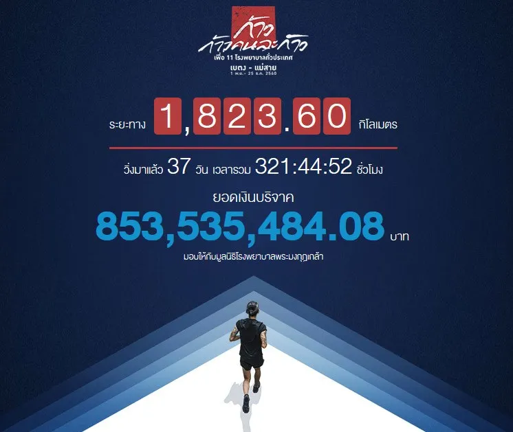 ยอดบริจาคล่าสุด วันที่ 18 ธันวาคม 2560 อยู่ที่ 853 ล้านบาท