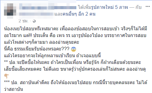 เกินไปไหม ! มีคนนำรูปนักเรียนหญิง มากลั่นแกล้งที่ไปสอบพรีเทสต์ลงเฟซบุ๊ก แถมด่าว่าแรด ทั้งที่ไม่รู้จักกัน