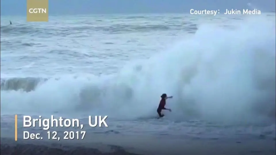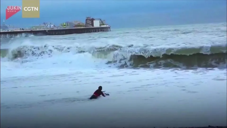 ชมภาพเหตุการณ์สุดลุ้นระทึกของหญิงสาวใจกล้า ผู้ฝ่าคลื่นทะเลที่กำลังโถมกระหน่ำชายหาดเมืองไบรจ์ตัน สหราชอาณาจักร เพื่อช่วยเหลือสุนัขตัวหนึ่งที่ซุกซนจนตกลงไปในกระแสน้ำอันเย็บเฉียบและเชี่ยวกราก เมื่อไม่นานนี้