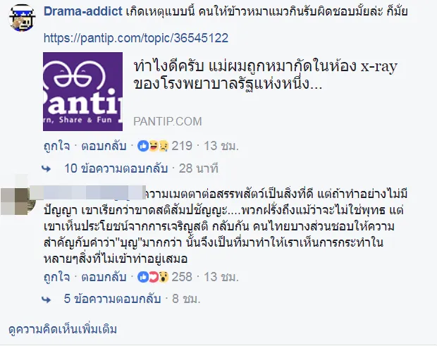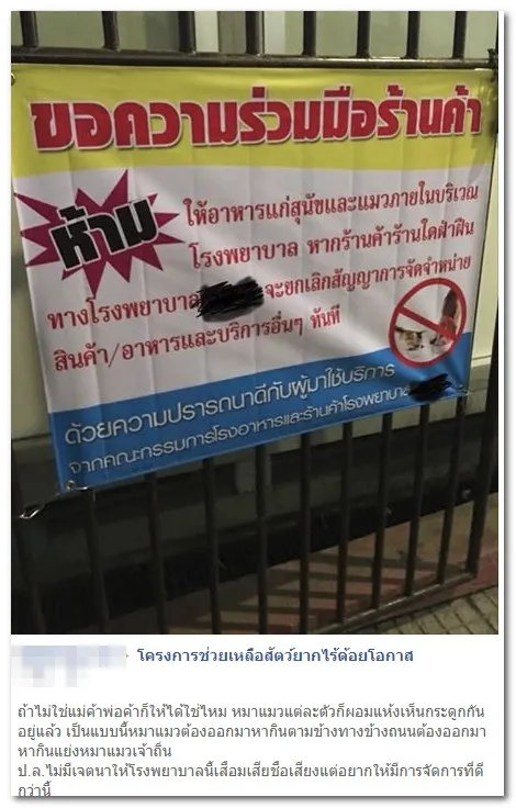 เพจ Drama-addict โพสต์เรื่องราวร้านค้าในโรงพยาบาลแห่งหนึ่งติดป้าย ห้ามให้อาหารสัตว์ แต่กลับโดนชาวเน็ตด่า