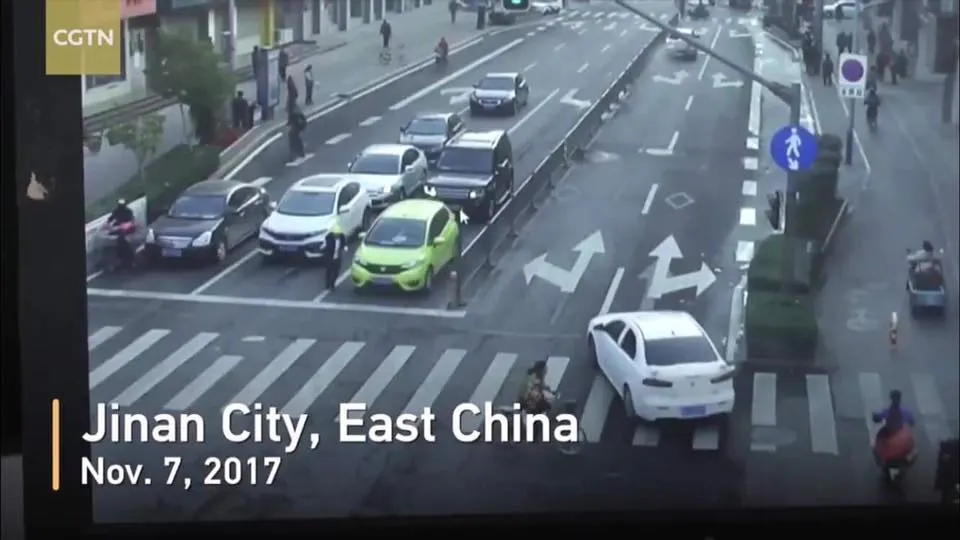 ชมภาพอุบัติเหตุสุดหวาดเสียวหัวใจ ที่เกิดขึ้นกับเด็กชายชาวจีนวัย 10 ปี ซึ่งกำลังวิ่งข้ามถนนเพื่อเดินทางไปโรงเรียนในเมืองจี้หนาน มณฑลซานตงทางตะวันออกของจีน แต่กลับถูกรถยนต์คันสีเขียวเคลื่อนชนจนล้มลงก่อนถูกเหยียบซ้ำจนร่างหายไปอยู่ใต้ท้องรถ เมื่อช่วงต้นเดือนก่อน