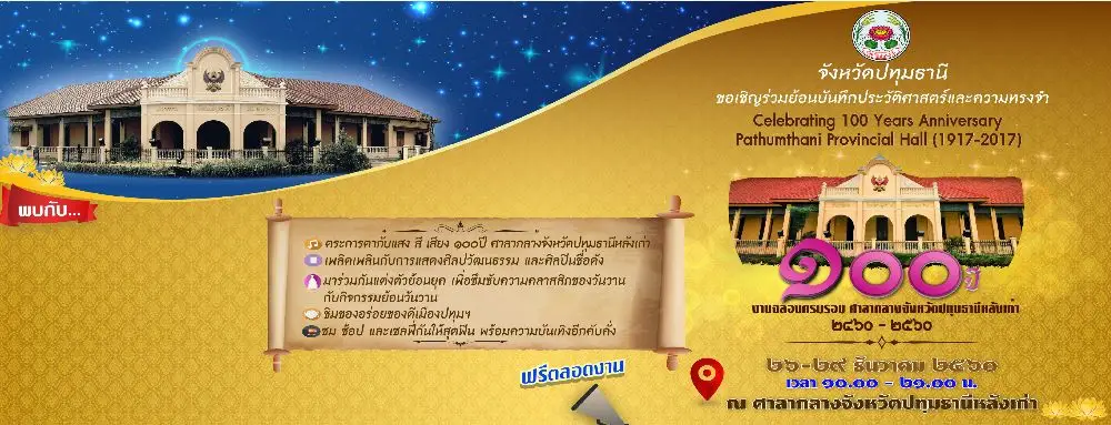ขอเชิญเที่ยวงานฉลองครบรอบ “๑๐๐ ปี ศาลากลางจังหวัดปทุมธานี หลังเก่า”