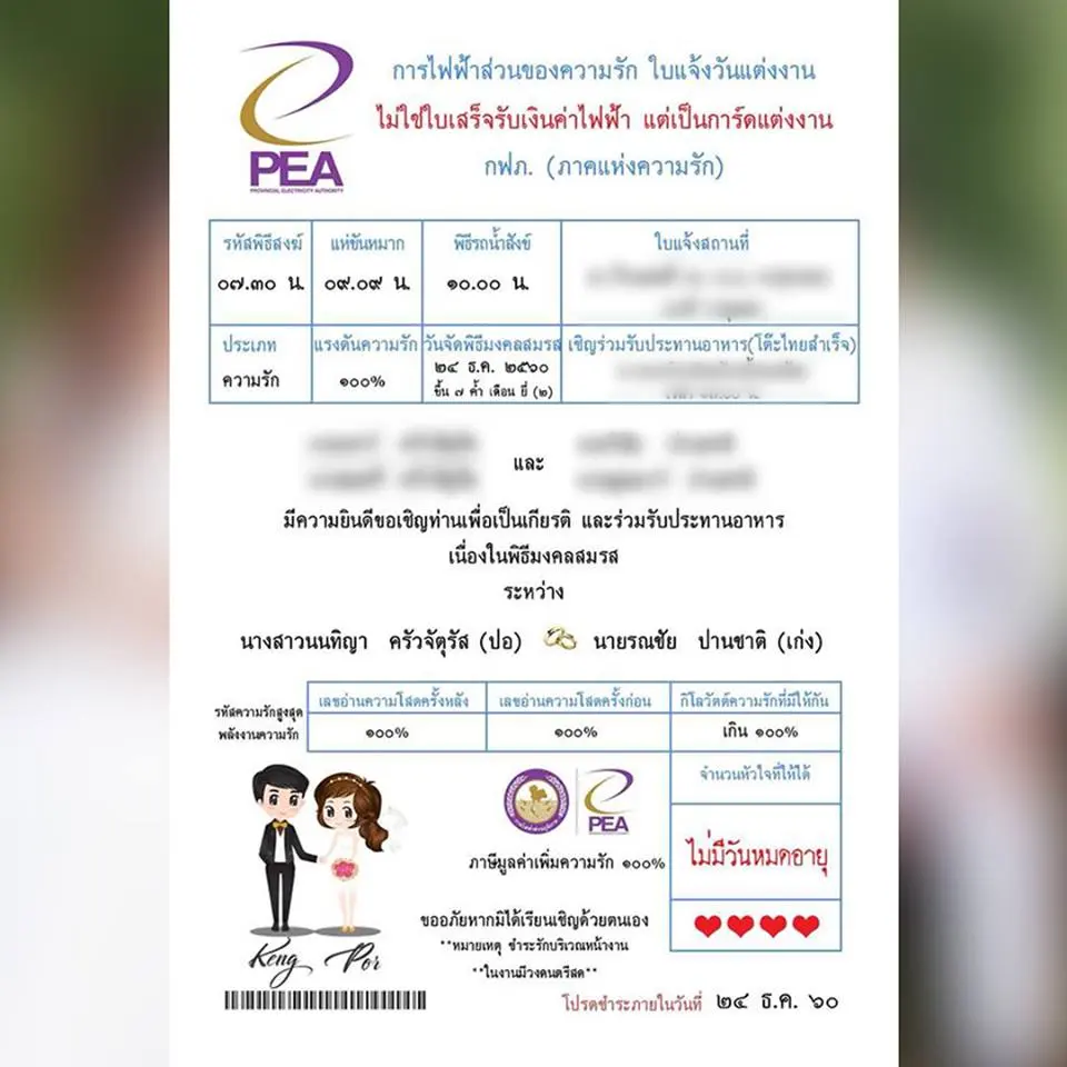 ส่อง การ์ดแต่งงาน #การไฟฟ้าส่วนของความรัก ที่ไม่มีโอกาสได้แต่ง