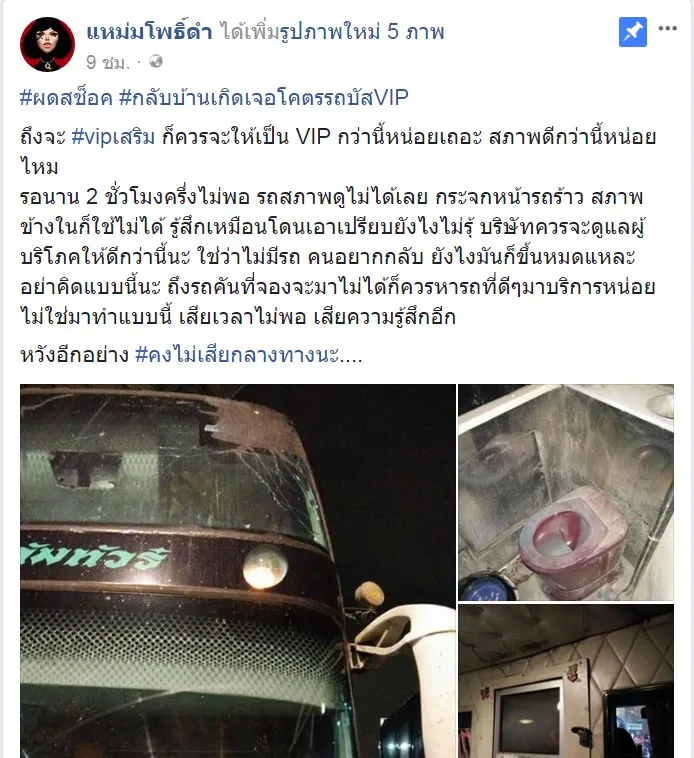 อย่างโทรม!! ชาวเน็ตแฉสภาพรถทัวร์ VIP สกหมกอย่างโทรม กระจกร้าว ฝุ่นเขรอะ ไร้คุณภาพ ไม่ดูแลเลย ไม่สมชื่อ VIP แย่มากๆ