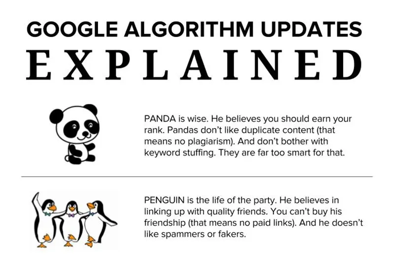 Panda : แน่นอนว่าเน้นเรื่องการทำ onpage ในการทำ SEO ให้มีประสิทธิภาพ คุณต้องสร้างเนื้อหาที่ดี และที่สำคัญนั่นก็คืออย่าไปคัดลอกบทความของชาวบ้านมา เพราะ Google จริงจังกับเรื่องนี้มาก และแน่นอนว่าถ้าถูก Google จับได้จะมีบทลงโทษในการทำแบบนั้นค่อนข้างรุนแรงมากเลยทีเดียว