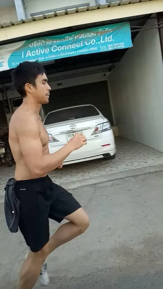 นึกว่าหนุ่มที่ไหนมาวิ่งถอดเสื้อหุ่นเท่ห์ขนาดนี้ อัดวีโอซะหน่อยพอเจอหน้าเป็น #พี่ณเดช มาขอนแก่นไม่บอกกันก่อนเลย #พี่ณเดชวิ่งออกกำลังกายตอนเช้าแล้วกำลังน่าจะวิ่งเข้าหมู่บ้าน