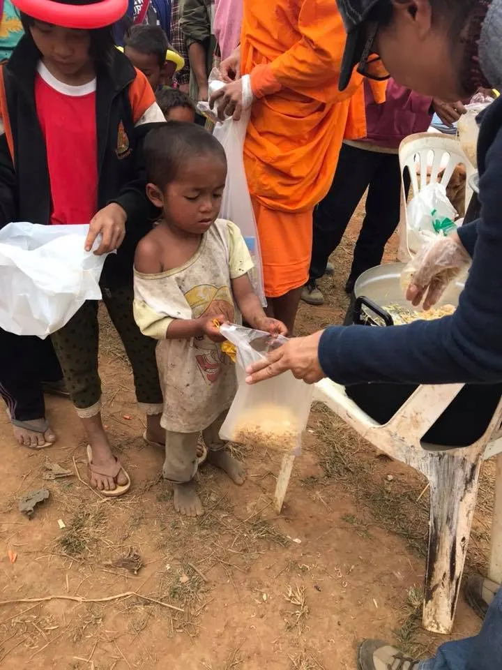 ทั้งนี้ในภาพและคลิปจะเห็นได้ถึงการต่อคิวเพื่อรับประทานอาหาร โดยถือถุงพลาสติกแบบหิ้วมายืนรอเมื่อได้รับอาหารเรียบร้อยแล้ว น้องๆ ทุกคนต่างกินแบบอิ่มอร่อย ผู้ที่โพสต์ระบุว่า ภาพนี้เป็น อาหารมื้อที่อร่อยที่สุด คือมื้อที่หิวที่สุด