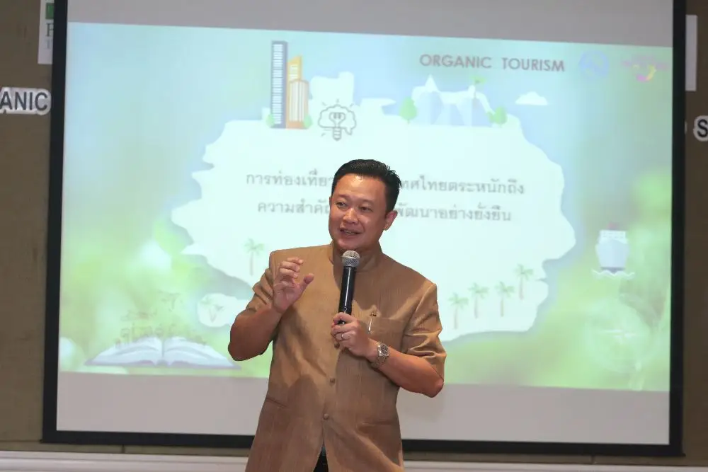 นายอรุษ นวราช กรรมการผู้จัดการ สามพราน ริเวอร์ไซด์ หนึ่งในผู้ร่วมก่อตั้งวิสาหกิจเพื่อสังคม Sustainable Food Lab (Thailand) หรือ แล็บอาหารยั่งยืนประเทศไทย กล่าวว่า แนวคิดการท่องเที่ยววิถีอินทรีย์ “ออร์แกนิก ทัวริซึ่ม” เป็นการขับเคลื่อนทางสังคมบนพื้นฐานแนวคิดธุรกิจเกื้อกูลสังคม และหลักปรัชญาเศรษฐกิจพอเพียง เป็นที่น่าดีใจที่ประเทศไทยจะได้เริ่มต้นทำเรื่องนี้เป็นแห่งแรก ซึ่งภายใต้ความร่วมมือของ ททท. และผู้ประกอบการธุรกิจท่องเที่ยว มั่นใจว่า จะสามารถสร้างความเปลี่ยนแปลงให้เกิดขึ้นตลอดระบบนิเวศน์อินทรีย์ มีการเชื่อมโยงตั้งแต่ต้นน้ำระหว่างธุรกิจท่องเที่ยวกับชุมชน เริ่มจากซื้อผลผลิตอินทรีย์ตรงจากเกษตรกรไปบริการนักท่องเที่ยว ปลายน้ำ ให้ความรู้สื่อสารไปยังผู้บริโภคหรือนักท่องเที่ยว เพื่อสร้างความเข้าใจและตระหนักถึงคุณค่าของห่วงโซ่อาหารอินทรีย์ ที่มีผลต่อสุขภาพของนักท่องเที่ยว คุณภาพชีวิตที่ดีของชุมชน เกษตรกร สังคม และสิ่งแวดล้อม