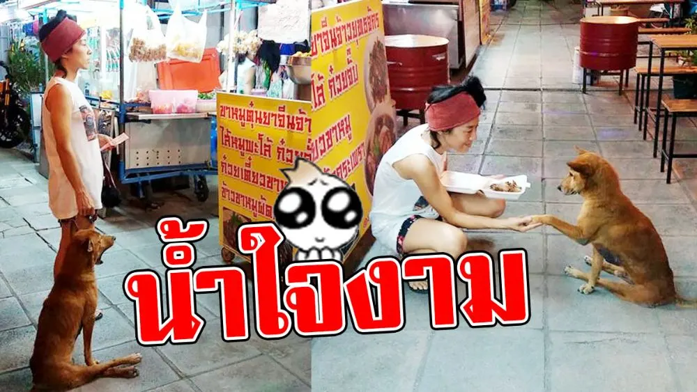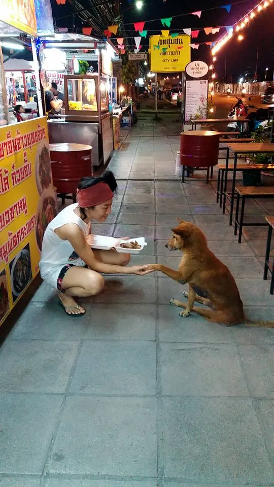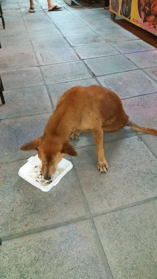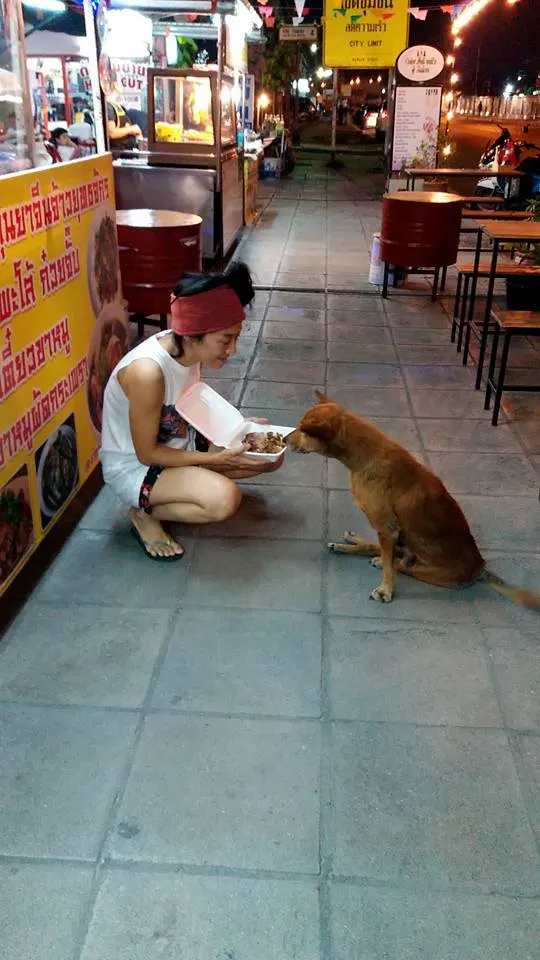 สาวน้ำใจงาม เห็นหมาพิการข้างถนนหิวโซนั่งมองคนกินข้าว ทนไม่ไหวซื้อข้าวให้2กล่อง อิ่มแปล้