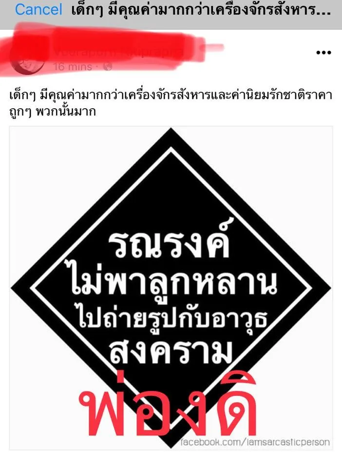 ดราม่าหนัก!! กรณีเพจดังรณรงค์ ไม่ให้พาลูกหลานไปถ่ายรูปกับทหารและอาวุธที่เอามาโชว์ในวันเด็ก