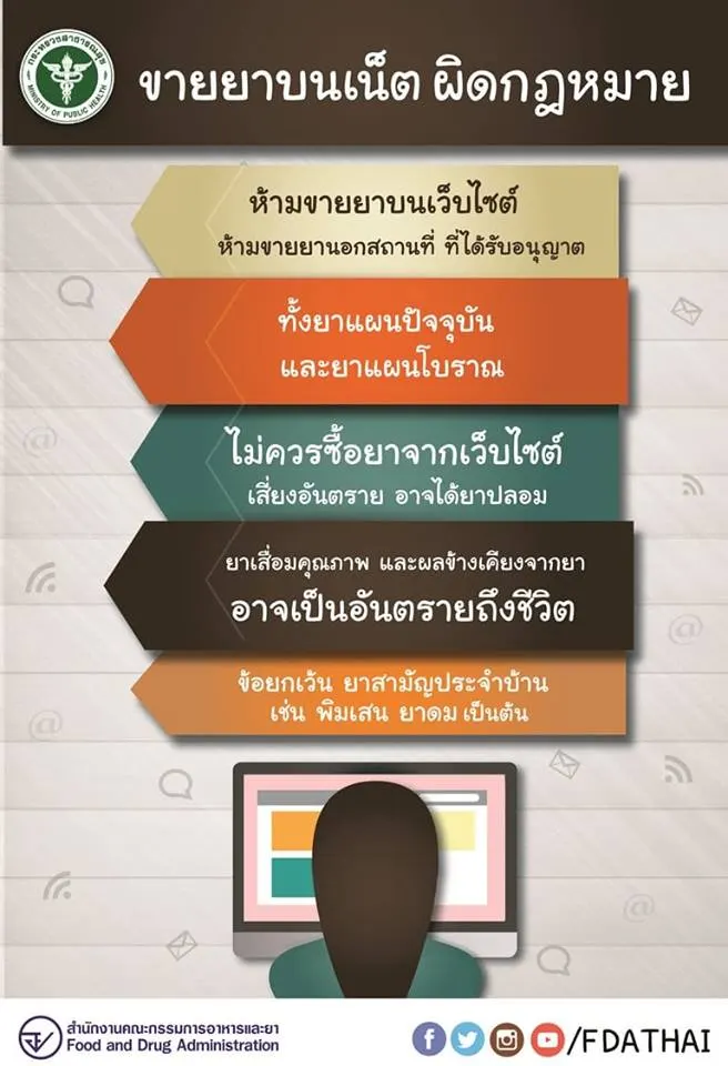 อย.เตือนดังๆ!! ขายยาผ่านเน็ตมีความผิดตามกฎหมาย โทษถึงจำคุกไม่เกิน 5 ปี ปรับสูงสุดไม่เกิน 1 แสนบาท