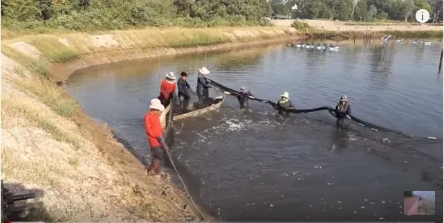 ภาพจับกุ้งเหลือก้นบ่อนำไปประกอบอาหาร
