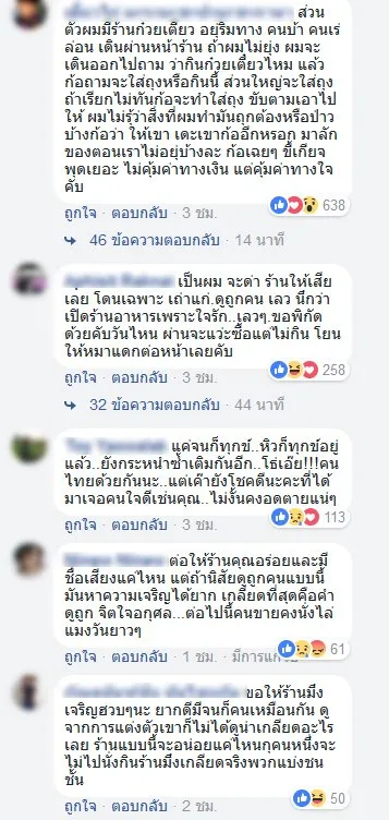 เรา : แล้วทำไมให้เค้านั่งกินในร้ านไม่ได้หรอคะ